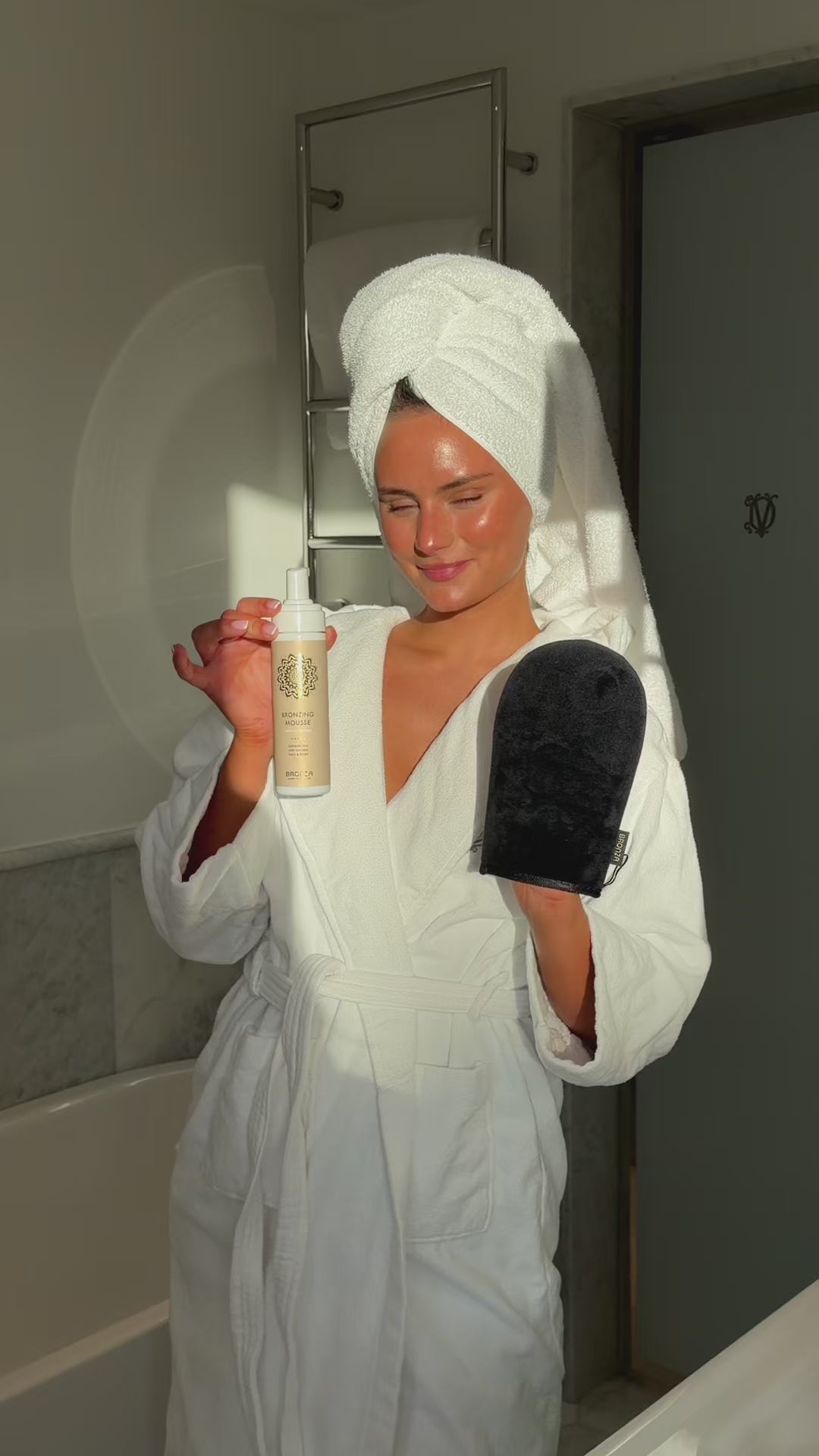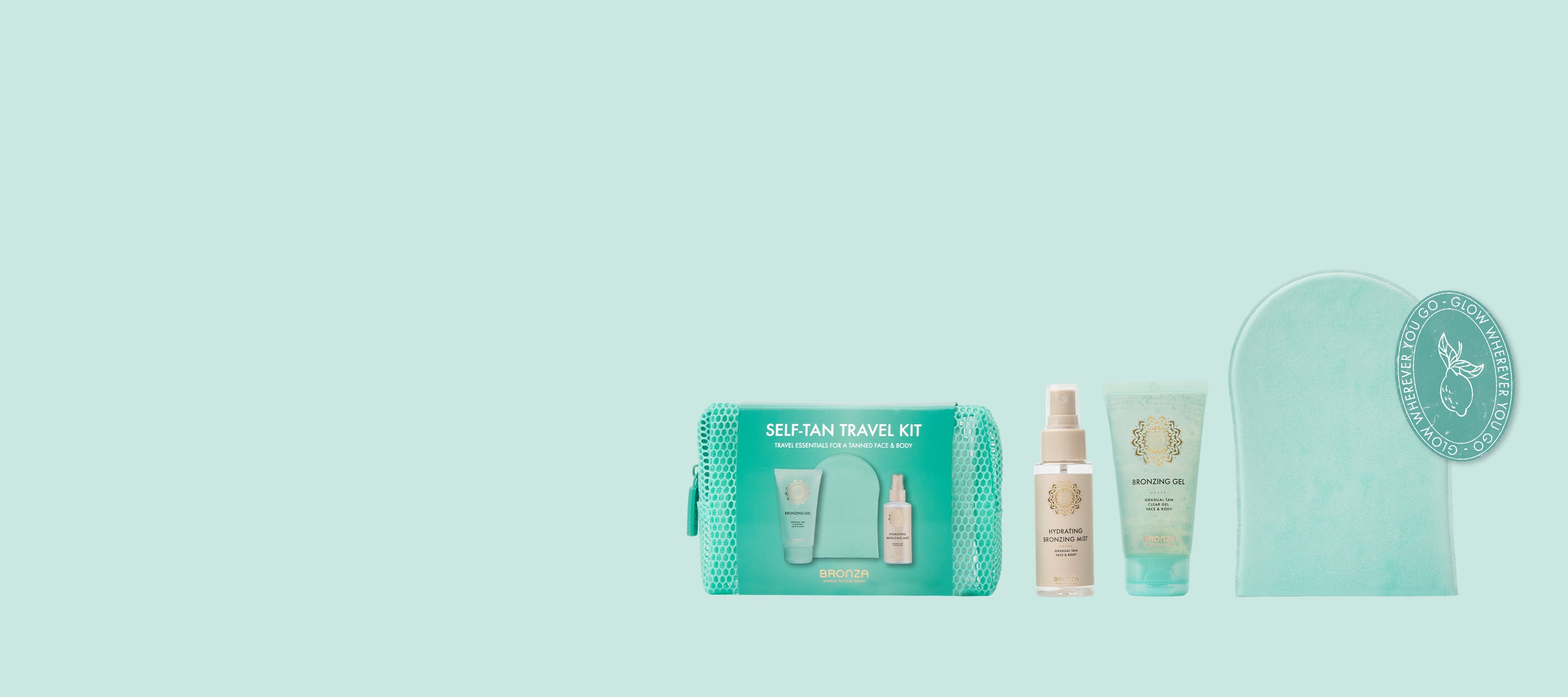 The kit includes Bronza’s bestselling Hydrating Bronzing Mist and Bronzing Gel in travel size, plus a soft application mitt for an even and flawless result.